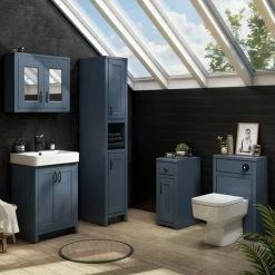 Chatsworth Blue 2-Door Mirror Cabinet – 690mm Wide with Matt Black Handles