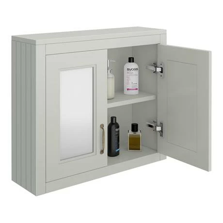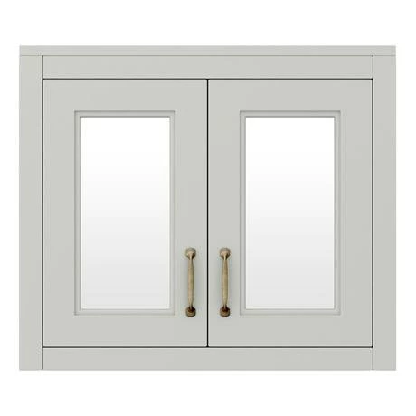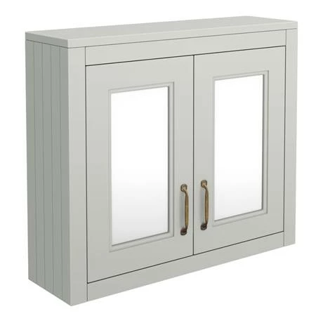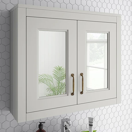 Embrace a traditional interior style in your bathroom with the Chatsworth Grey Two Door Mirror Cabinet. The tongue and groove side panelling and chic satin grey create a countryside elegance. It features classic handles with a brass oxide finish. More than just a design feature – the Chatsworth bathroom cabinet has plenty of space for your cosmetics and soft closing doors for a peaceful environment. Pair your wall hung bathroom mirror cabinet with the Chatsworth Traditional Grey Vanity for a matching look in your bathroom.