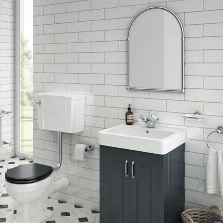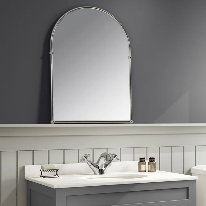 With its eye catching polished chrome frame, the Chatsworth Traditional Arched Mirror will make a charming centrepiece in your bathroom. As well as providing timeless styling, this 490mm wide traditional bathroom mirror will help reflect light around the room – a handy trick to give the impression of more space in smaller bathrooms and en suites. Complement this Chatsworth arched bathroom mirror with matching chrome items from the Traditional 4 Piece Bathroom Accessory Pack. Why not hang it above a Chatsworth Traditional Graphite Vanity Unit for a vintage effect?