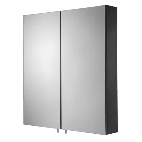 - Matt black steel cabinet with mirrored doors