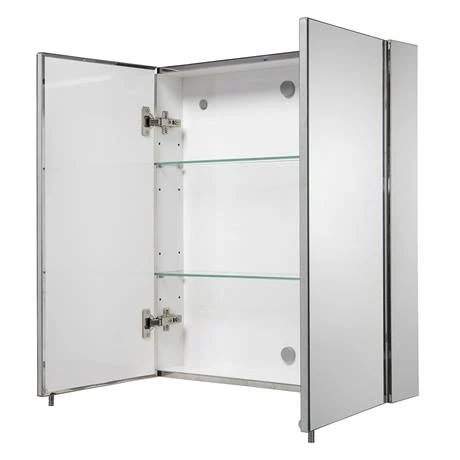 This contemporary double door stainless steel cabinet is perfect for adding a modern touch to your bathroom. Ideal for keeping your everyday essentials close to hand, the mirrored finish creates a bright space by enhancing natural light. The addition of optional stylish chrome pin handles makes opening easier and minimises the chance of fingerprints being left on the mirror. Supplied fully assembled, it is also easy incredibly easy to install with the Flexi-Fix Always Level easy installation system, meaning a single person installation is possible and your cabinet will always be level.