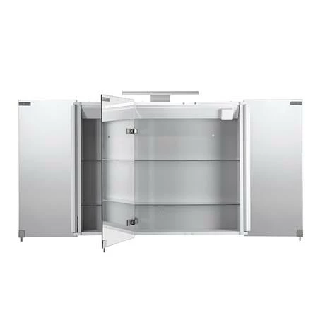 Finished with a contemporary aluminium frame and double sided mirrored doors, the cabinet also includes an integrated shaver socket. Fingerprint preventing pin handles and wipe clean surfaces also mean that maintaining the ‘straight out of the box’ gleaming finish is easy.