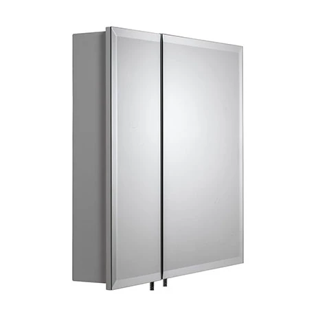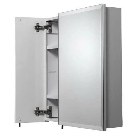 - White steel cabinet with bevelled mirrored doors