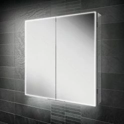 The HIB Exos 80 LED Illuminated Aluminium Mirror Cabinet, with elegant design and practical features at its core, the Exos double door cabinet combines a sleek finish with contemporary flourishes. Delicate, precision lighting frames the piece, while the decorative mirrored profile reflects the surrounding décor to integrate seamlessly into your bathroom. Combined with integrated USB and charging sockets, de-misting doors, Exos is the height of fashion and functionality.