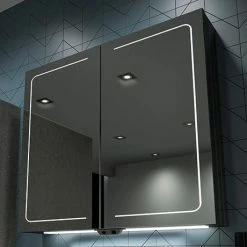 These beautifully designed cabinets are fitted with a proximity sensor. When you step in front of the mirror, the sensor activates radiant LED illumination and internal heat pads. These features stay on for five minutes after you have moved away, so you can switch them on, take a shower and come back to a clear mirror. Ambient lighting underneath the cabinet adds another touch of luxury.