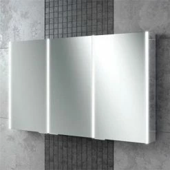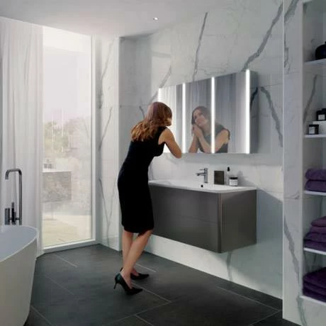 The Xenon LED Mirror Cabinet is a stylish 80cm triple door cabinet with LED vertical illumination and a mirror profile that reflects the wall or tiles, so the mirror matches the style of your bathroom. It features an integrated charging socket for toothbrushes, shavers and trimmers, soft closing double sided mirror doors allowing you to use a mirror when the doors are open and a sensor switch so the light is simply turned on and off by a simple wave of your hand. The mirror is IP44 rated which makes it suitable and safe for use in the bathroom.