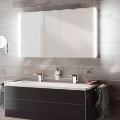 The Royal furniture collection from Keuco features sleek and minimalist designs. This Royal Match 1200mm LED Illuminated Mirror Cabinet with its six internal shelves provides plenty of space for toiletries. Made from aluminium, the cabinet has two handy shaver sockets while the LED illuminated lighting is operated via the capacitive touch sensor and can be optionally operated via the light switch.