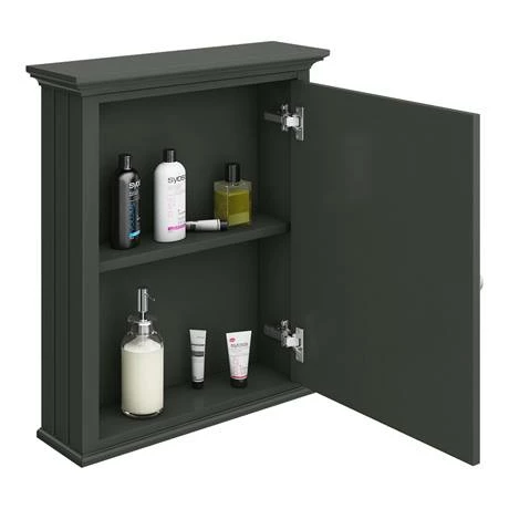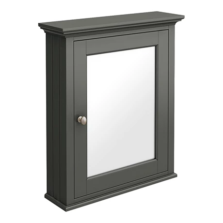 The luxury mirror wall cabinet beautifully finished in Charcoal Grey from our exclusive Old London range. The stunning collection of period inspired furniture, sanitary ware and brassware captures timeless elegance and truly will give any bathroom a graceful quality. The mirror cabinet is crafted to the highest standards and features bevelled detailing and a elegant brushed satin nickel handle.
