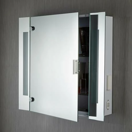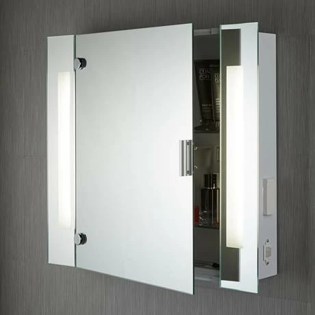 This illuminated bathroom mirror cabinet with shaver socket will make a stylish addition to any bathroom. The integrated shaver socket is perfect for your bathroom appliances while the sleek metal cabinet is framed by two strips of light which are easily turned on and off by a rocker switch. It’s IP44 rating makes is splashproof and suitable for use in the bathroom.